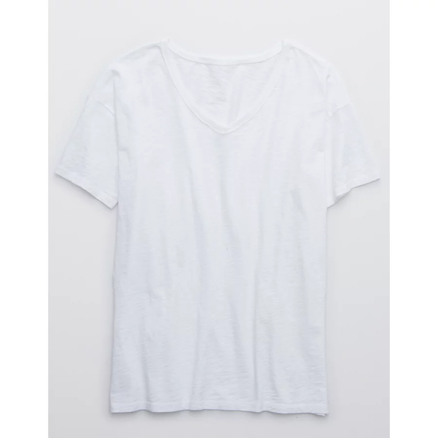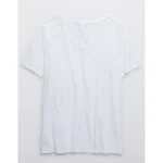 Aerie Distressed Basic V-Neck Boyfriend T-Shirt – White