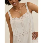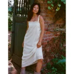 Lightweight gauze fabricAdjustable straps with tie backFlutter sleeve deetsElasticated V-waistSide seam pockets (!!)Accessibility deets: elastic waist, adjustable straps, and over-the-head