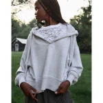 Real Good Everyday yarnRolled necklineRibbed trim on cuffs and hemPointelle deets and split cuffs on the sleevesThis style is heathered