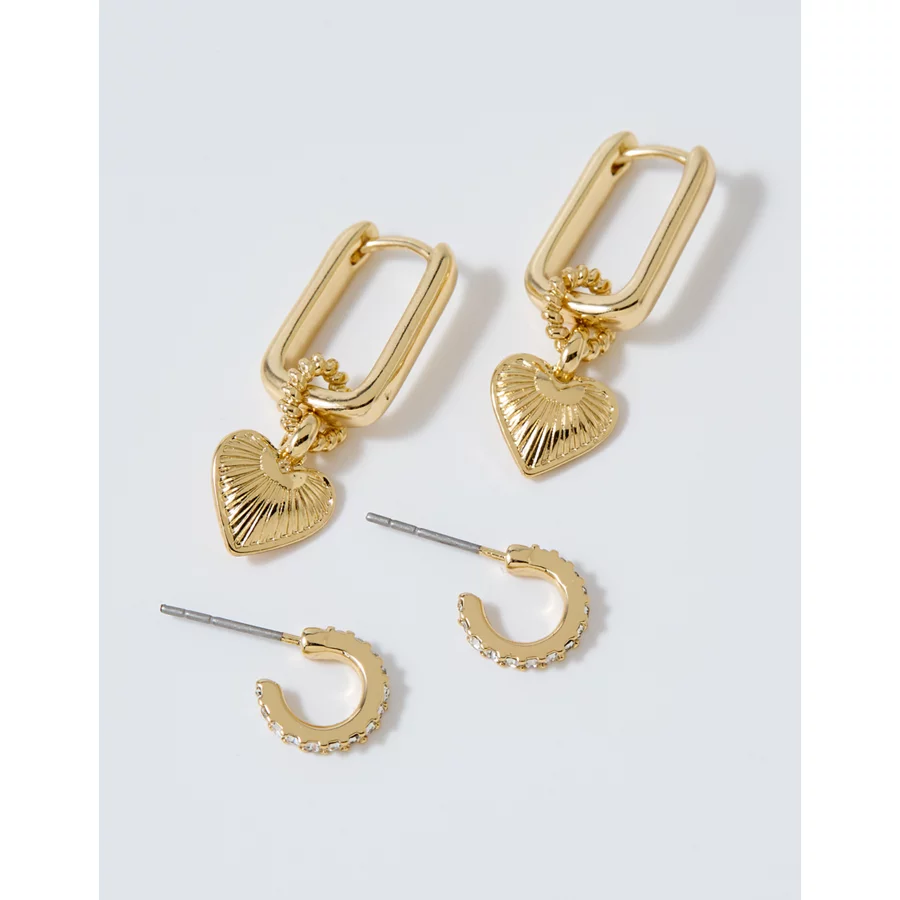 Aerie Etched Heart Hoop Earring Pack – Gold