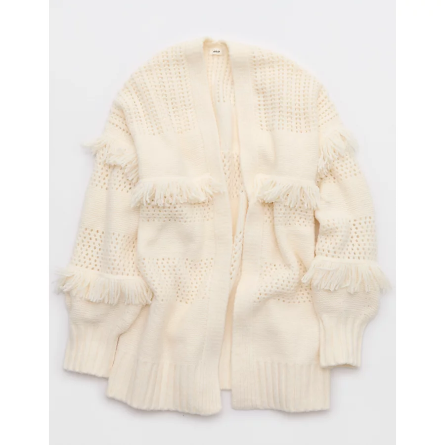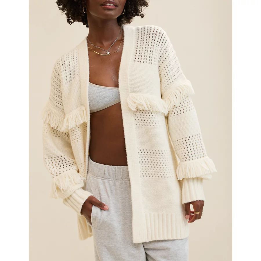 Aerie Fringe Plaid Blanket Scarf - Shell Gray