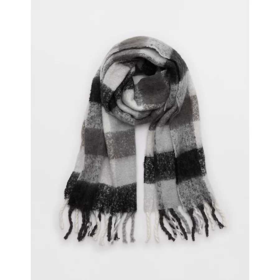 Aerie Fringe Plaid Blanket Scarf – Shell Gray
