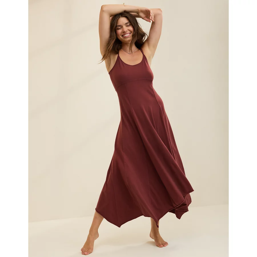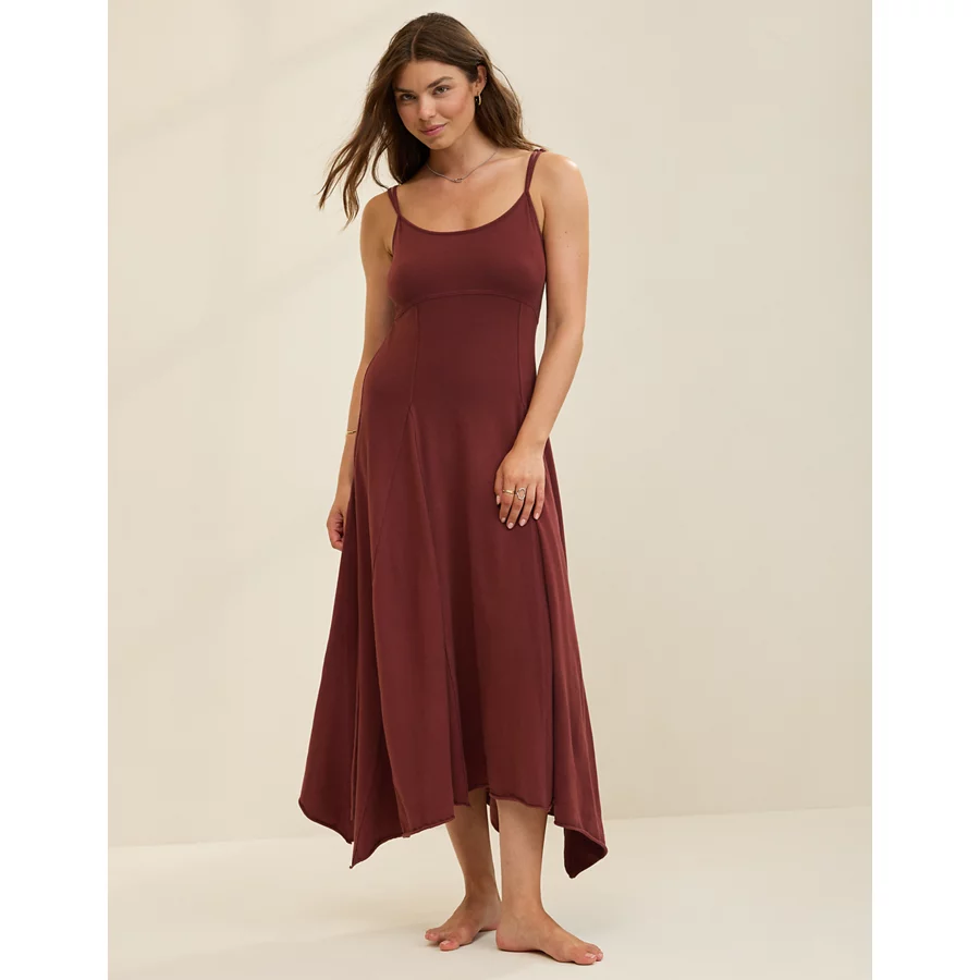 Aerie Godet Maxi Dress – Dark Rust