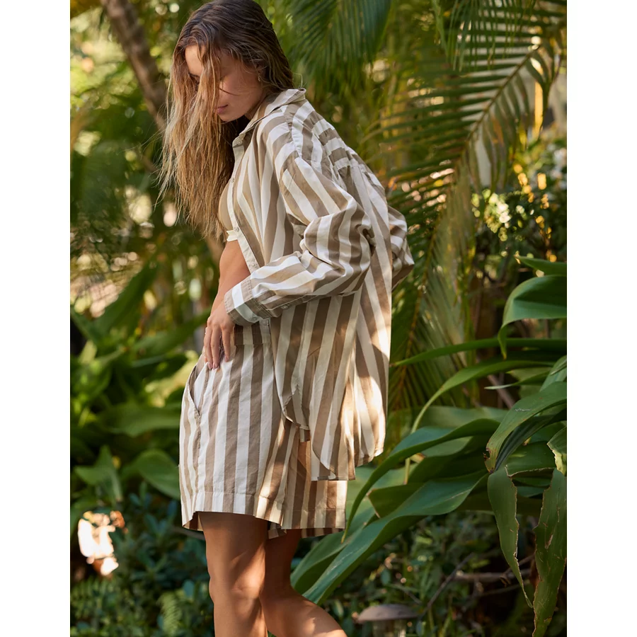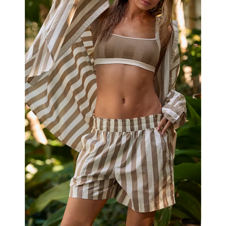 Ultra-soft Real Good Buzzed Terry fabricNEW! UPF 50 sun protectionStrappy back deets! 85% Recycled Nylon, 15% ElastaneUse a mild detergent