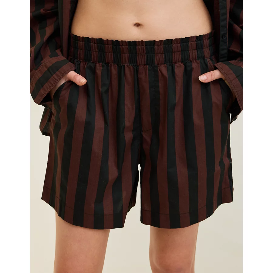 Lightweight, airy cotton poplin in stripesElastic paperbag waistFunctional button front with drawstringLined with boxer shorts 100% CottonMachine washImported Mini length