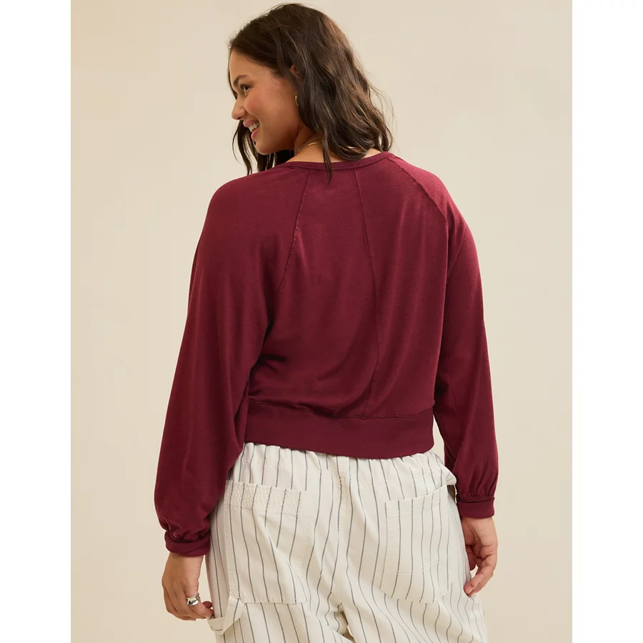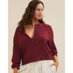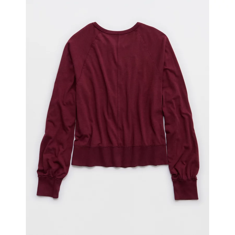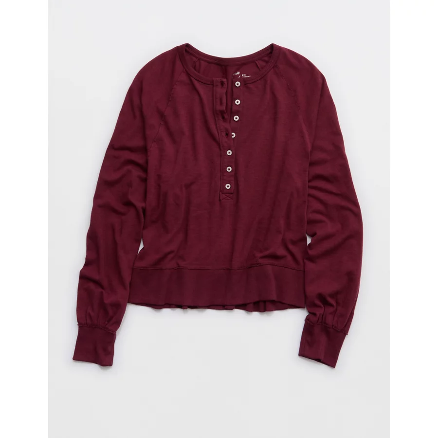 Aerie Happy Snit Henley T-Shirt – Deep Cherry