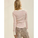 Real Good Everyday yarnRolled necklineRibbed trim on cuffs and hemPointelle deets and split cuffs on the sleevesStripedAccessibility deets: over-the-head access