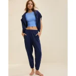 Real Good Everyday yarnRolled necklineRibbed trim on cuffs and hemPointelle deets and split cuffs on the sleevesStripedAccessibility deets: over-the-head access
