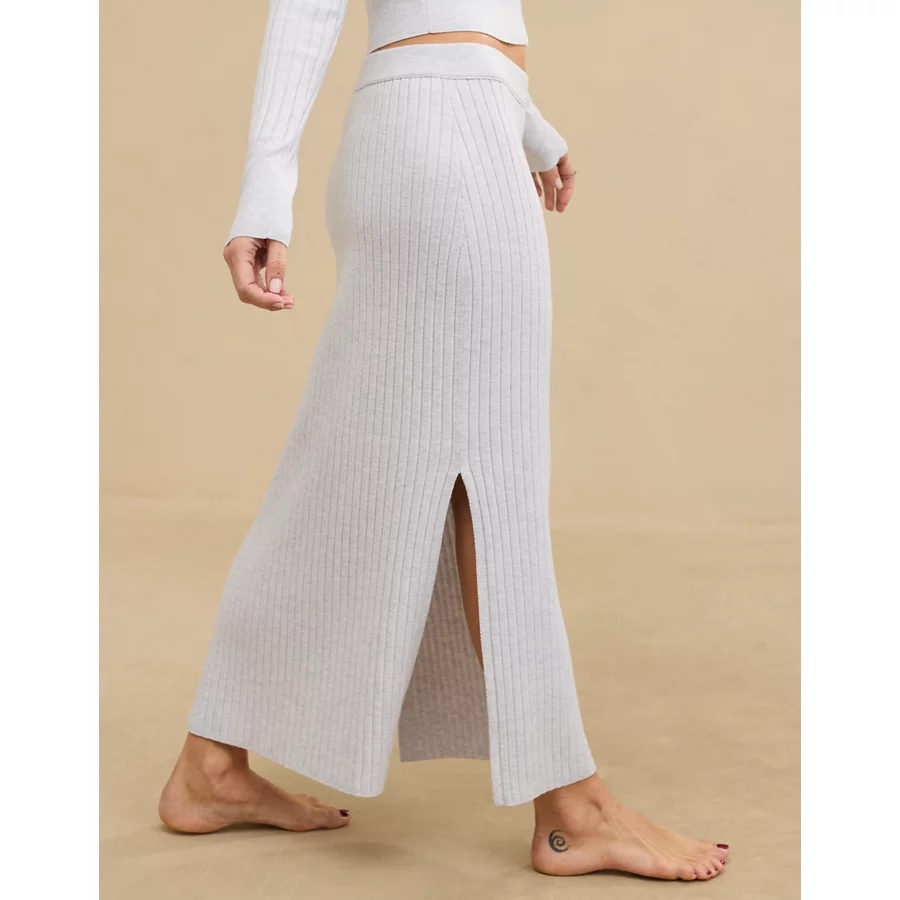 Aerie Late Night Midi Skirt – Light Heather Gray