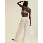 Lightweight gauze fabricAdjustable straps with tie backFlutter sleeve deetsElasticated V-waistSide seam pockets (!!)Accessibility deets: elastic waist, adjustable straps, and over-the-head