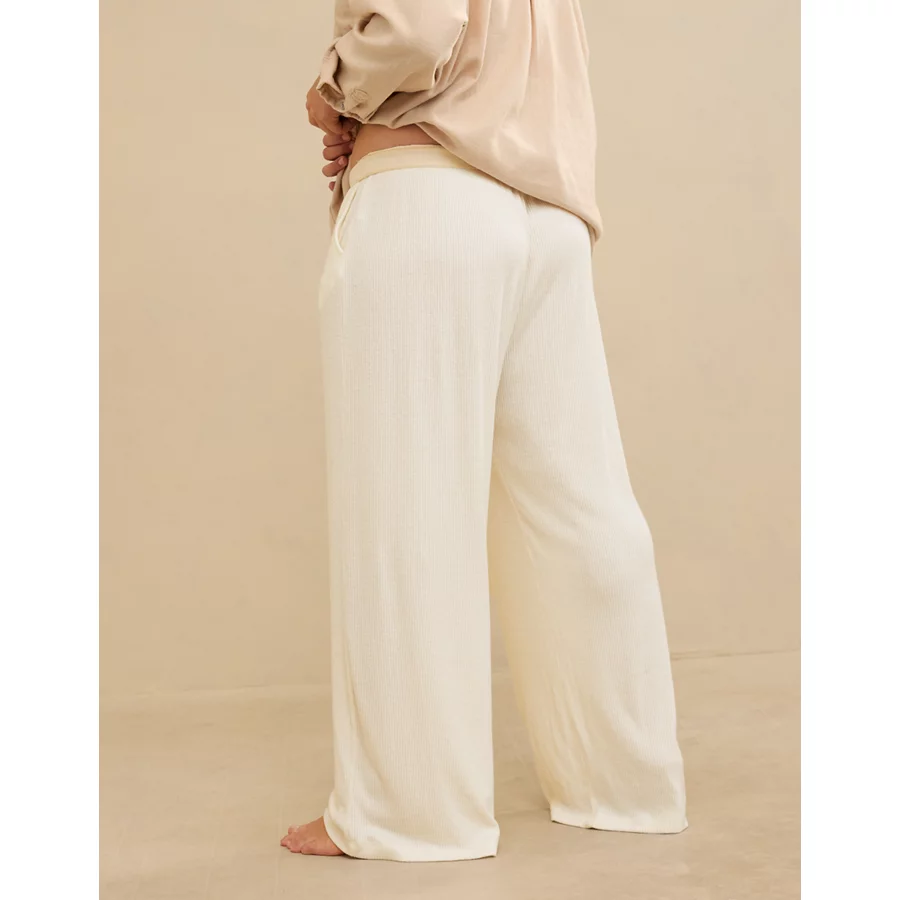 Aerie Off-Duty Cozy Knit Ribbed Trouser PJ – Soft Muslin