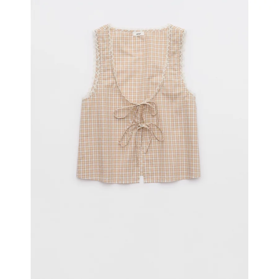 Aerie Off-Duty Poplin Tie Front Tank Top – Koko Brown