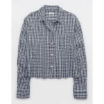 Aerie Anytime Fave Flannel Button Down Shirt – Dark Shadow