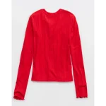 Aerie Pointelle Cardi T-Shirt – Bright Red