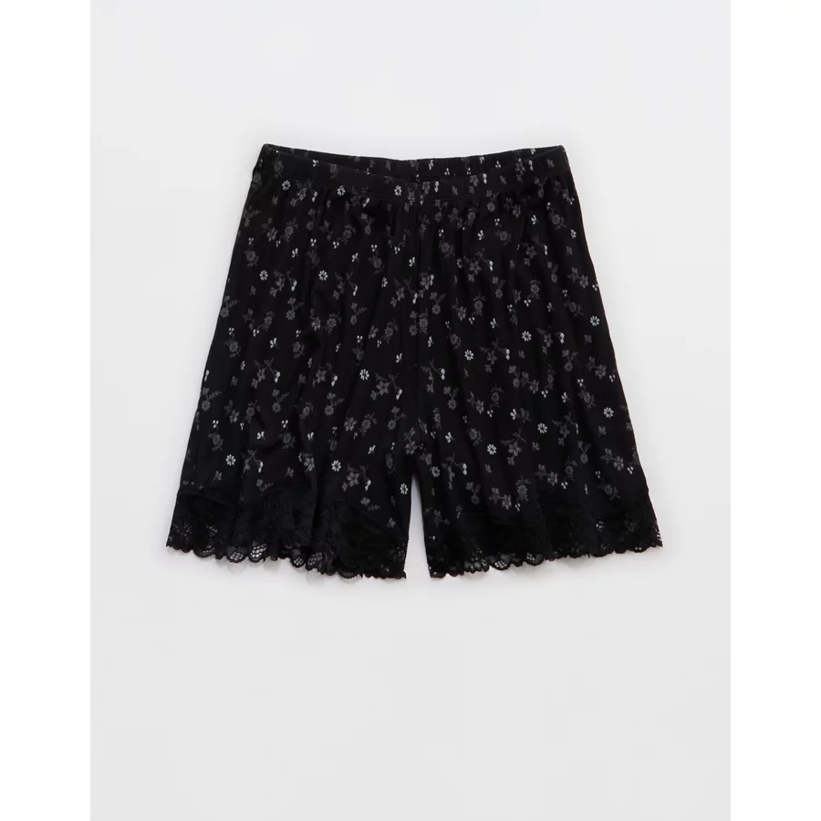 Aerie Real Soft® Rib Lace Boxer - True Black