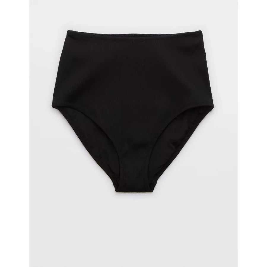 Aerie Ribbed High Waisted Full Coverage Bikini Bottom – True Black