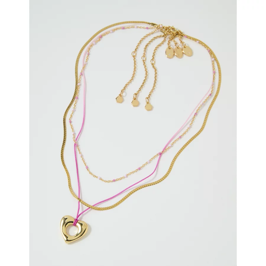 Aerie Roped Heart Necklace 3-Pack – Gold