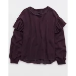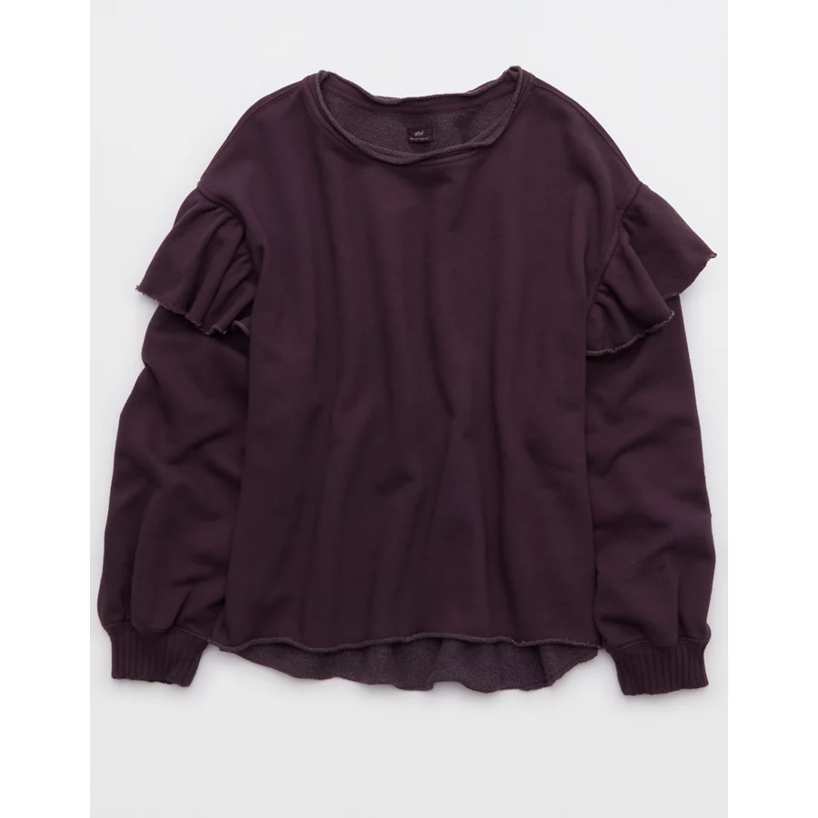 Aerie Ruffle Sleeve Sweatshirt – Cool Berry