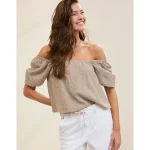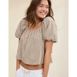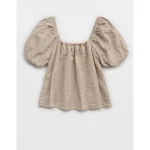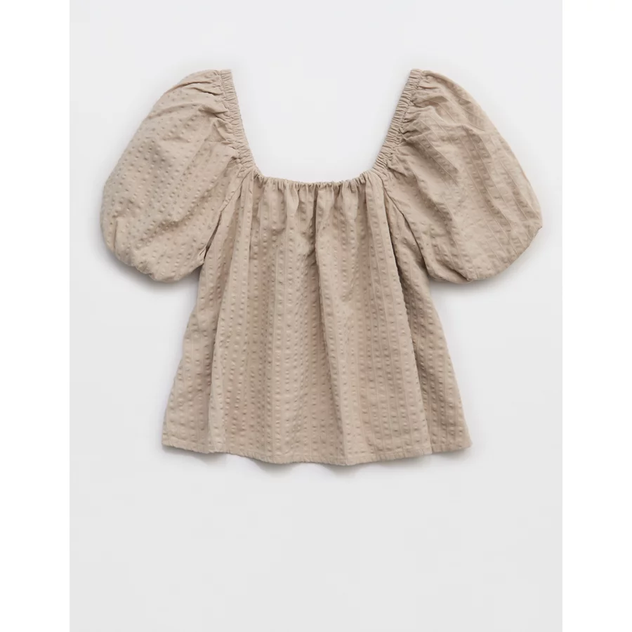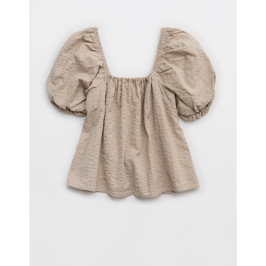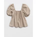 Aerie Seersucker Puff Sleeve Top – Stone Harbor