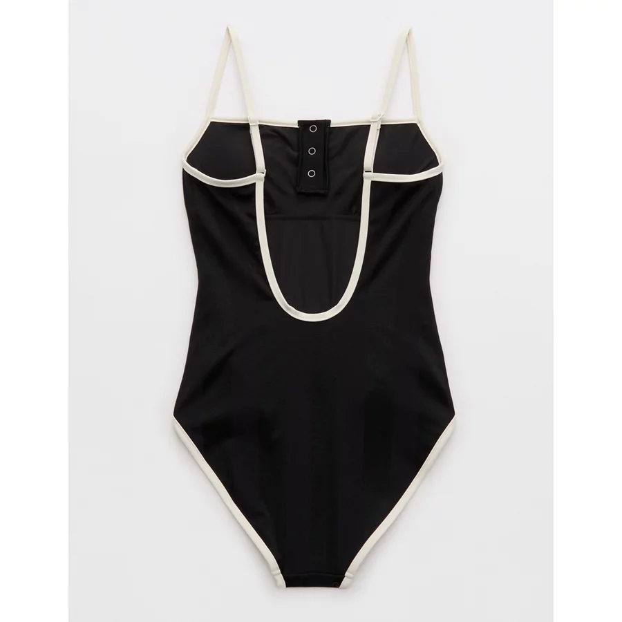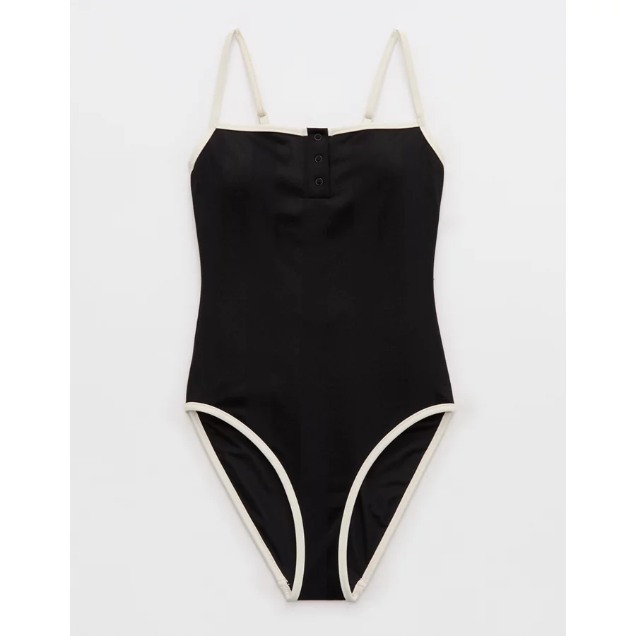 Aerie Shine Henley One Piece Swimsuit – True Black
