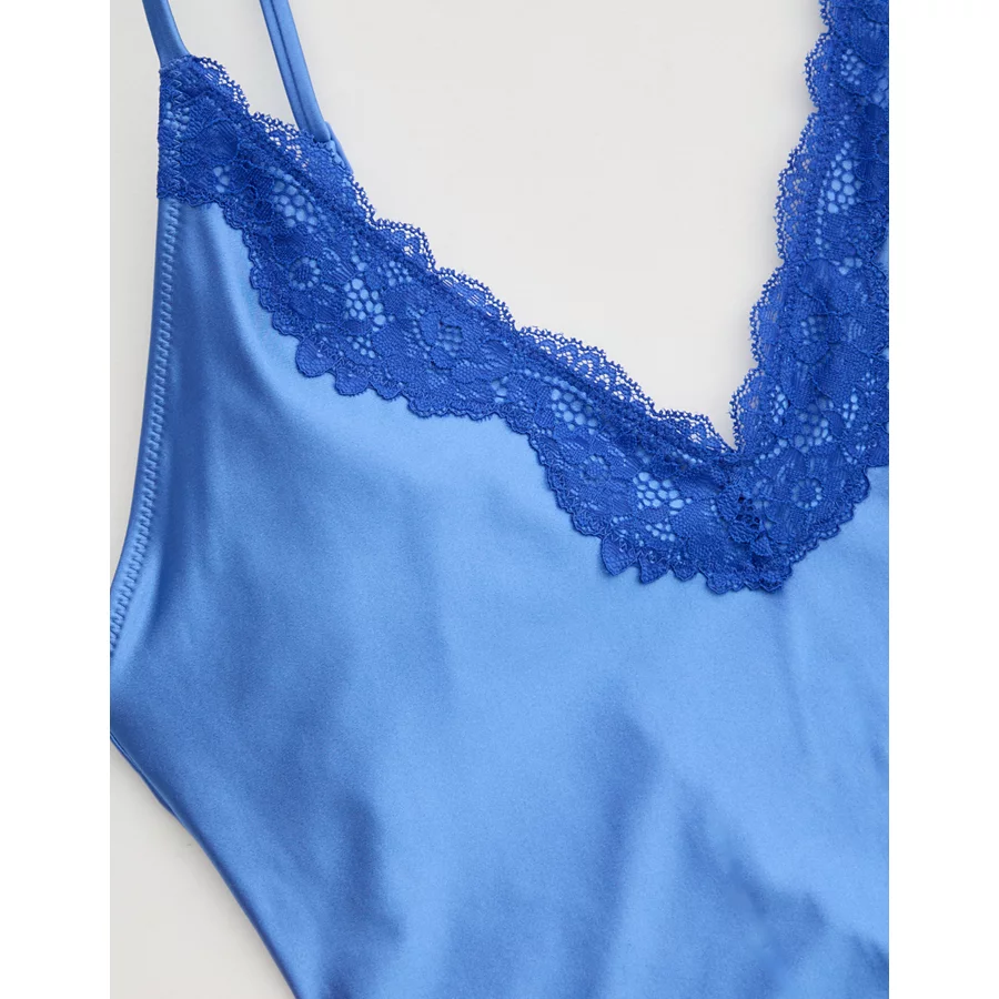 Aerie Shine Lace Plunge One Piece Swimsuit – Laundry Blue