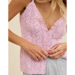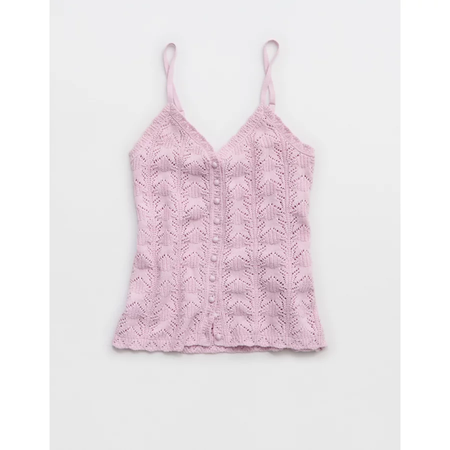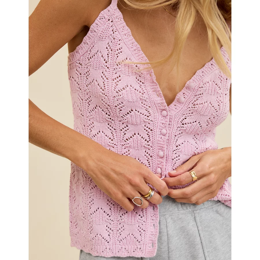Lightweight gauze fabric with interior lining on top half Smocked waistCenter front slitFunctional buttons on the frontFemme ruffle and crochet