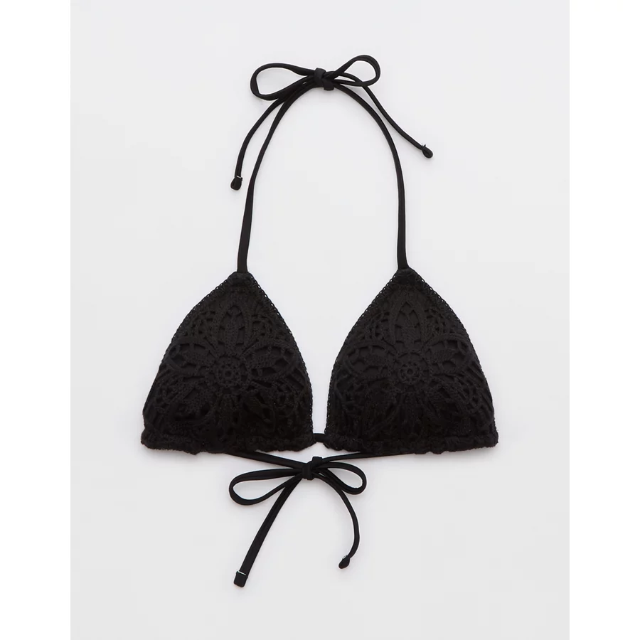 Aerie The Sun-Lover Crochet Bikini Top – True Black