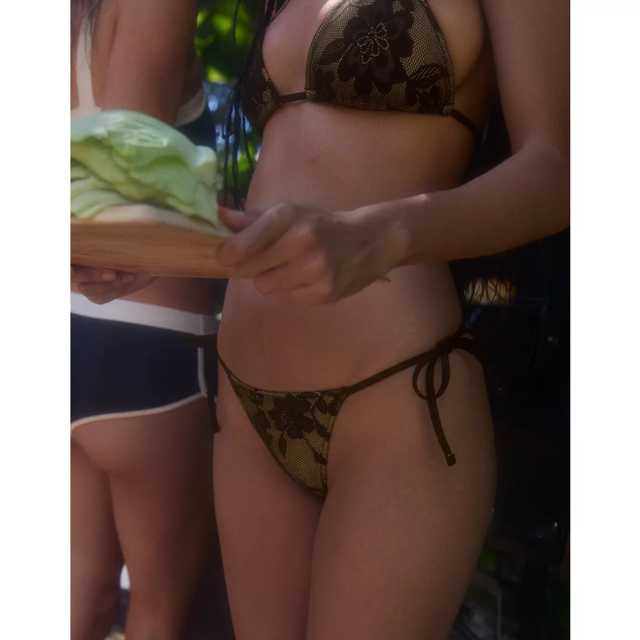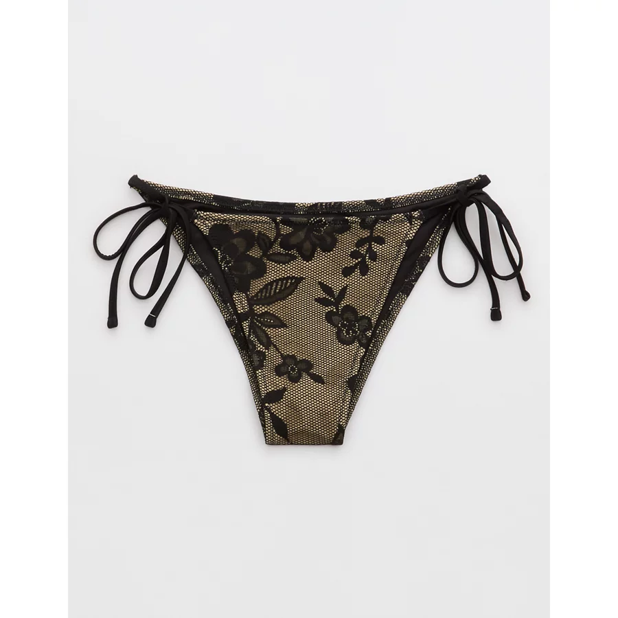 Aerie The Sunbun Lace Bikini Bottom – True Black