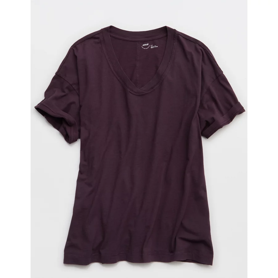 Aerie Voop Oversized Boyfriend T-Shirt – Deep Plum