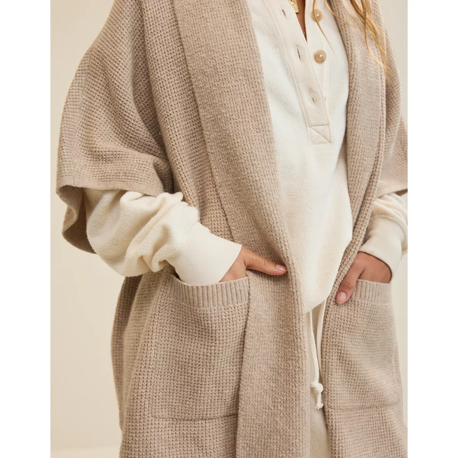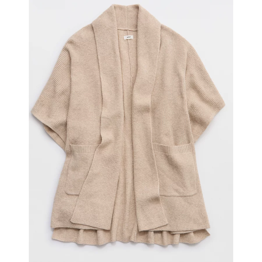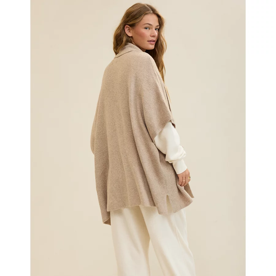 Aerie Waffle Shawl Cape – Heather Fawn