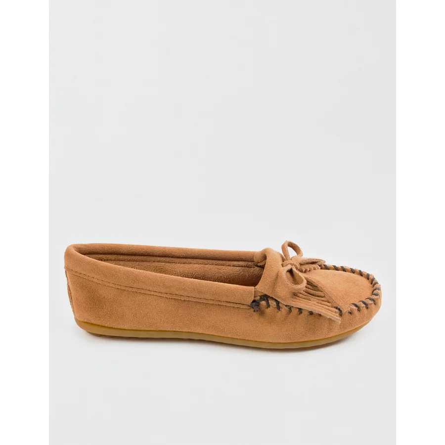 Minnetonka Women’s Kilty Hardsole Moccasin – Taupe