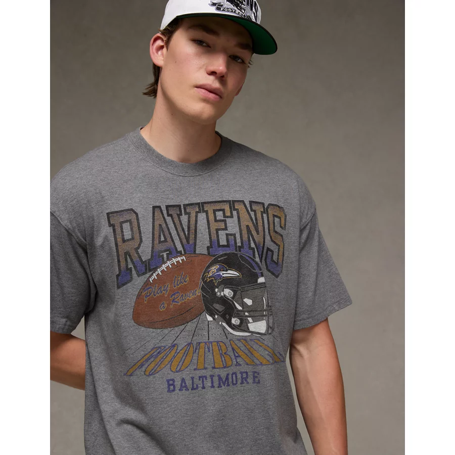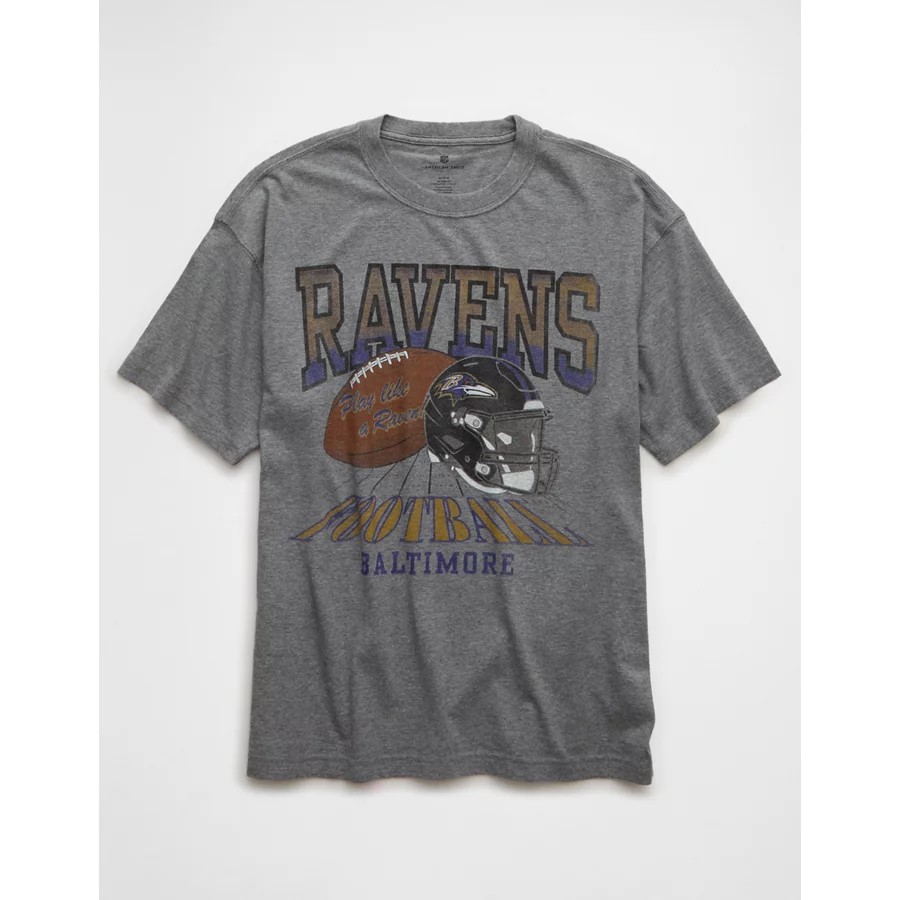 NFL Boxy Baltimore Ravens Graphic T-Shirt – Charcoal Heather Gray
