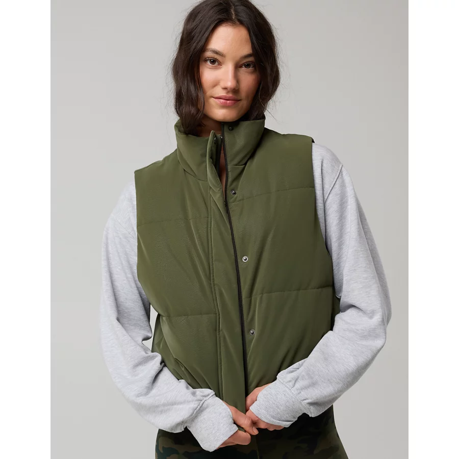 OFFLINE By Aerie Classic Length Puffer Vest – Military Green