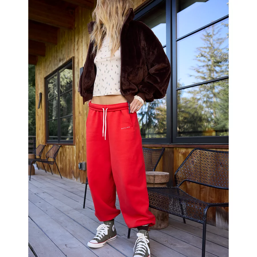 OFFLINE By Aerie Cloud Fleece Baggy Jogger – Bright Red