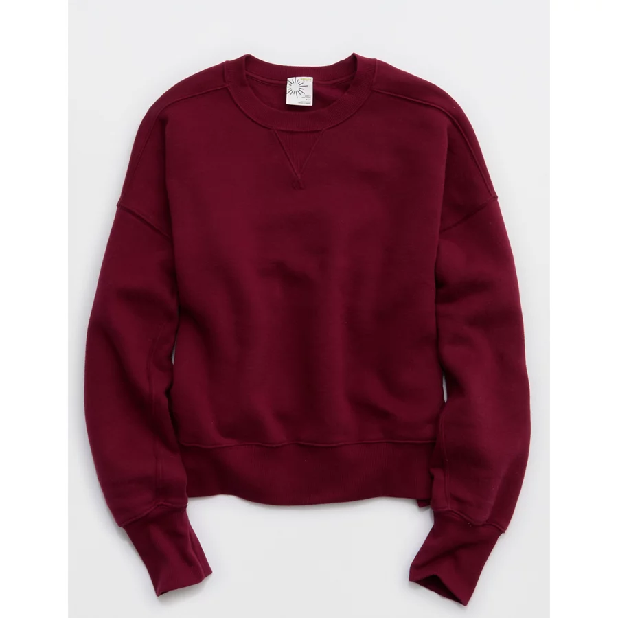 OFFLINE By Aerie Cloud Fleece Classic Crewneck Sweatshirt – Deep Cherry