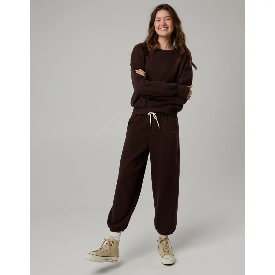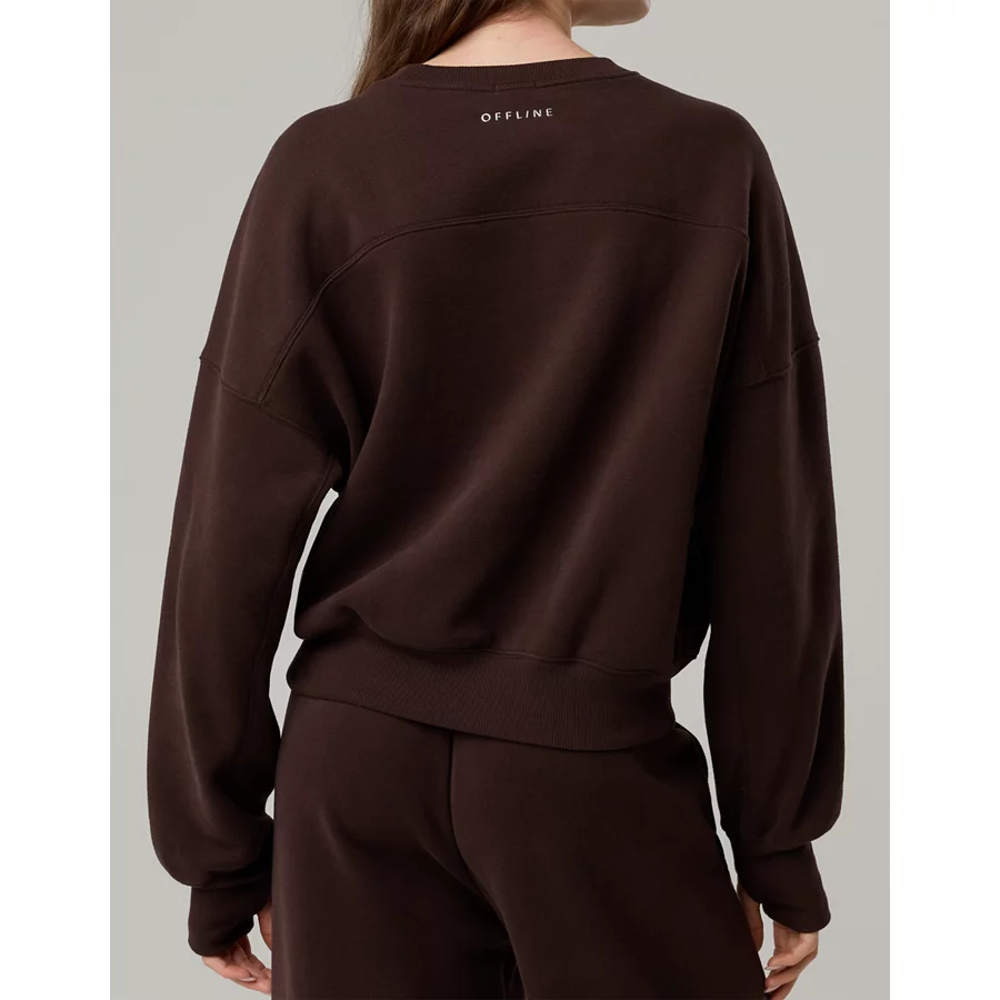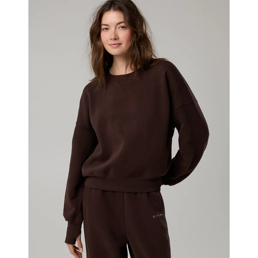 OFFLINE By Aerie Cloud Fleece Classic Crewneck Sweatshirt – Deep Earth