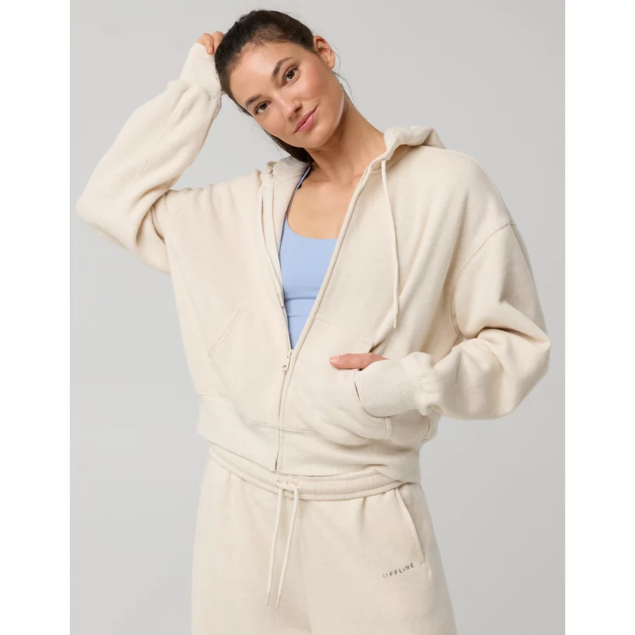 OFFLINE By Aerie Cloud Fleece Classic Full Zip Sweatshirt – Heather Frost