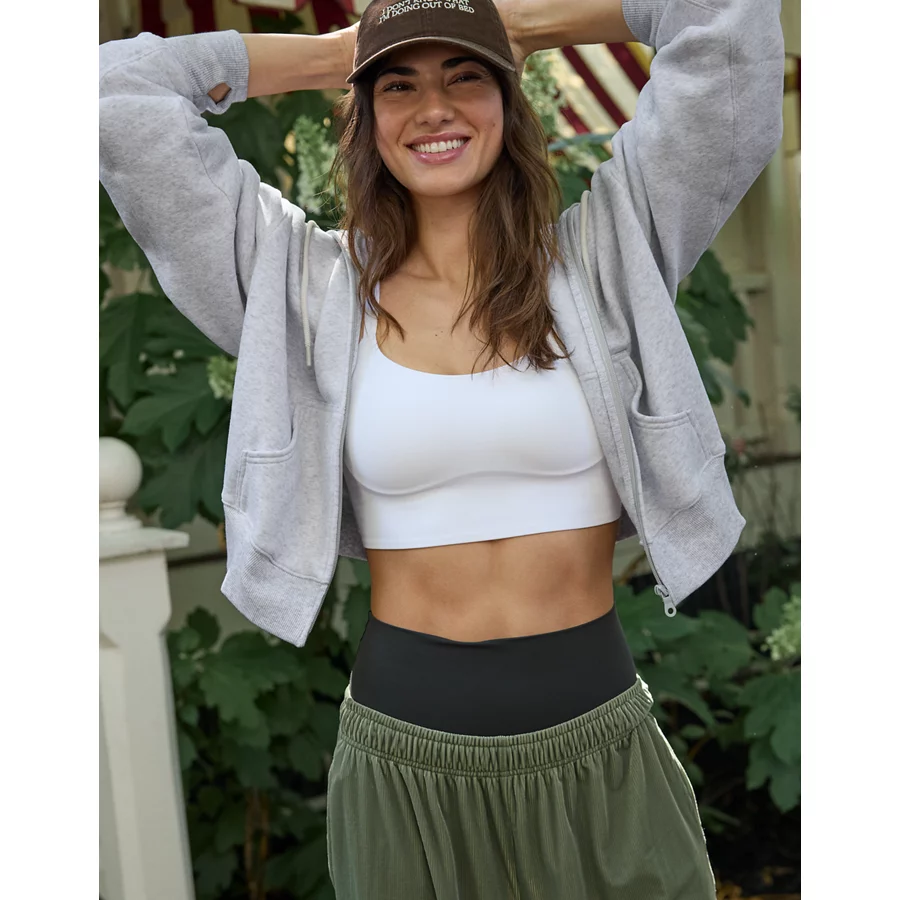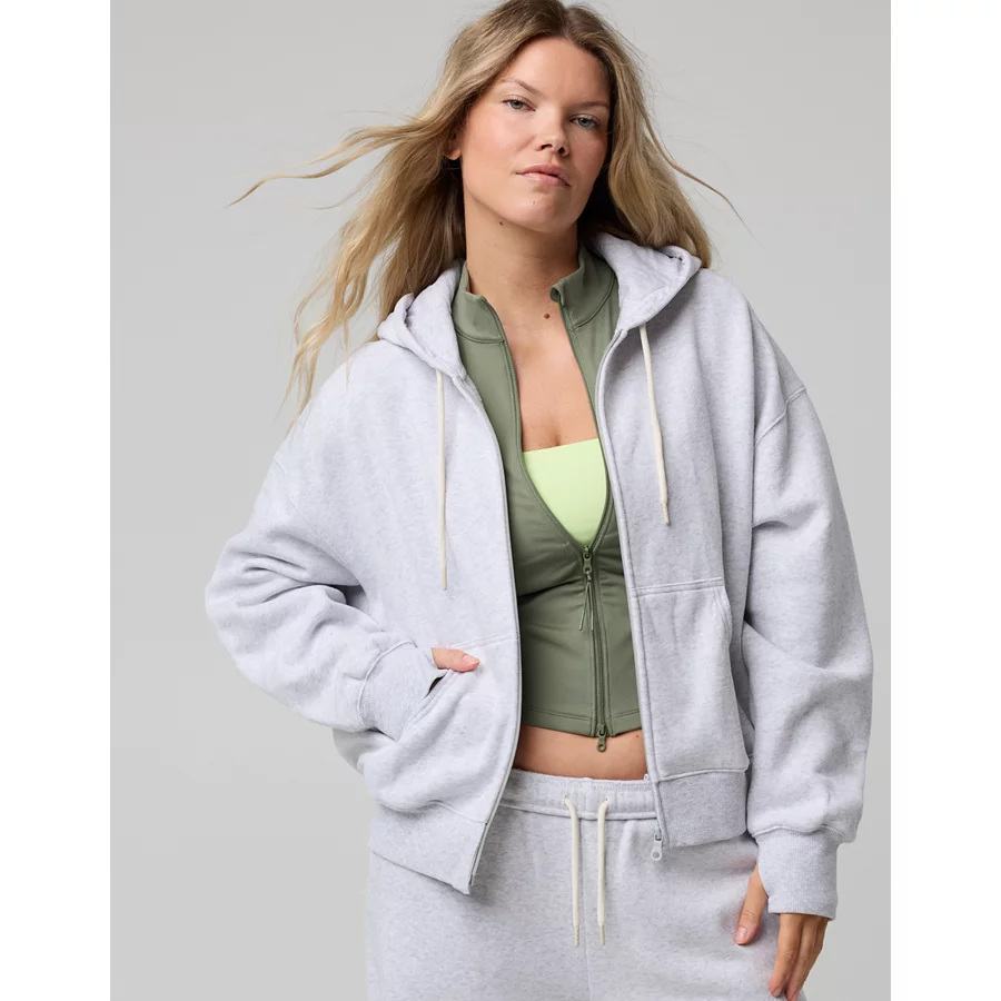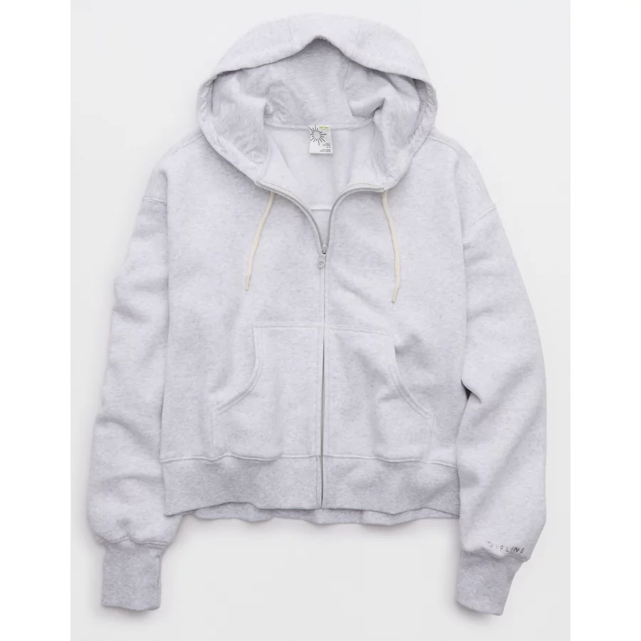 OFFLINE By Aerie Cloud Fleece Classic Full Zip Sweatshirt – Light Heather Gray