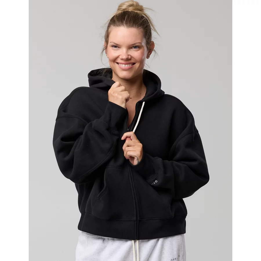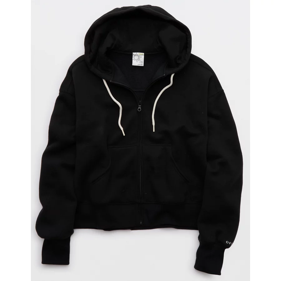 OFFLINE By Aerie Cloud Fleece Classic Full Zip Sweatshirt – True Black