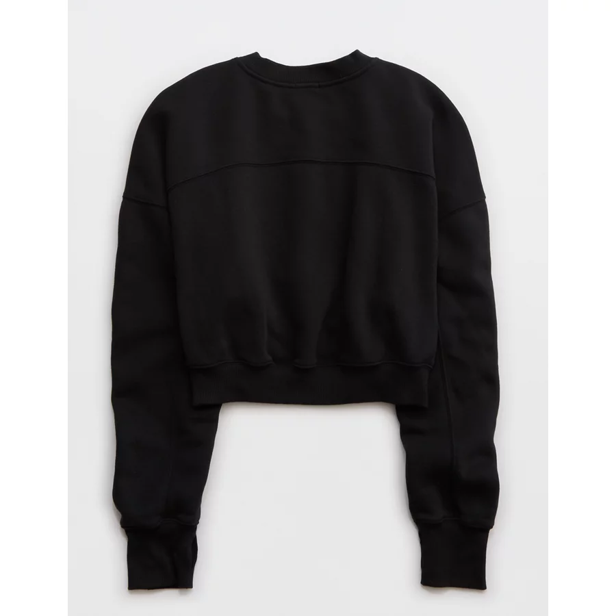 OFFLINE By Aerie Cloud Fleece Cropped Crewneck Sweatshirt – True Black