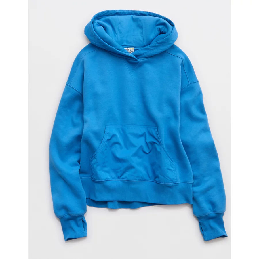 OFFLINE By Aerie Cloud Fleece Nylon Hoodie – Sky Blue