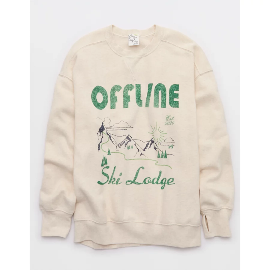 OFFLINE By Aerie Cloud Fleece Oversized Crewneck Sweatshirt – Heather Frost
