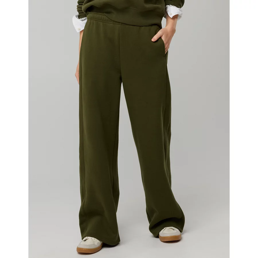 OFFLINE By Aerie Cloud Fleece Trouser – Military Green