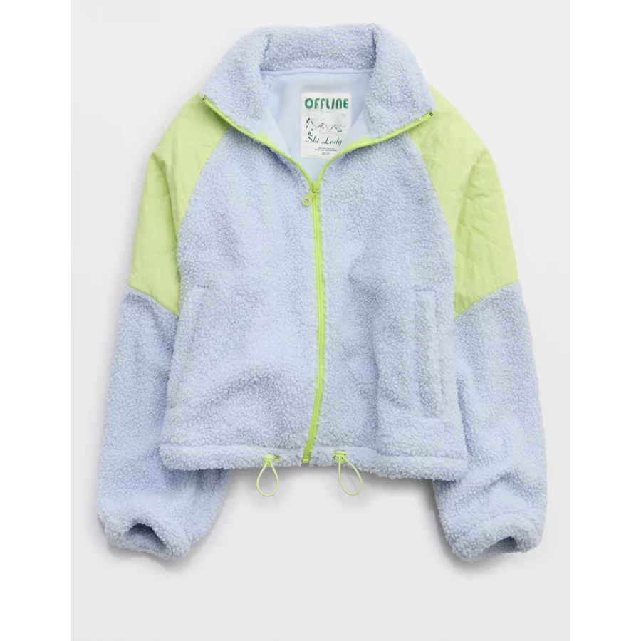 OFFLINE By Aerie Fluff Love Full Zip Jacket – Eyelet Blue