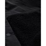 THE LOOK: Soft sherpa & smooth nylon. Button up.