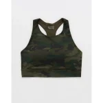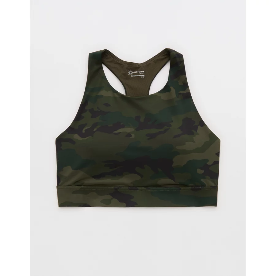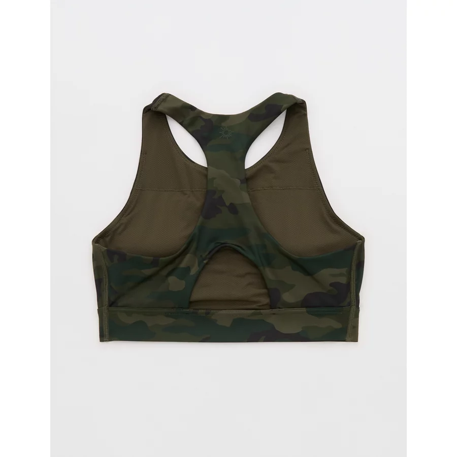 OFFLINE By Aerie Goals Gloss High Neck Sports Bra – Olive Daze