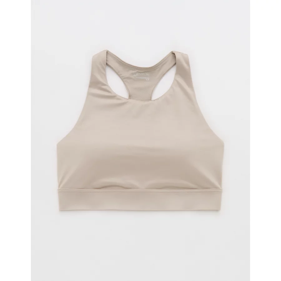OFFLINE By Aerie Goals Gloss High Neck Sports Bra – Stone Harbor