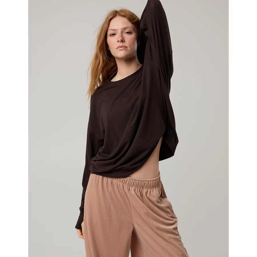 OFFLINE By Aerie Let’s Stretch Long Sleeve Boyfriend T-Shirt – Deep Earth