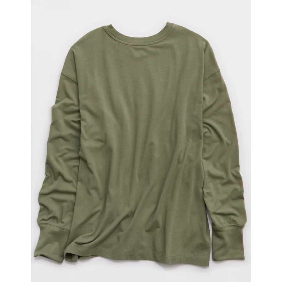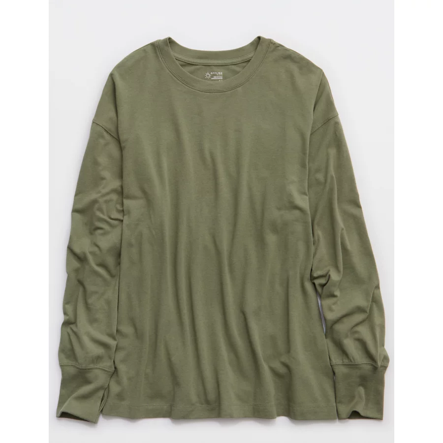 OFFLINE By Aerie Let’s Stretch Long Sleeve Boyfriend T-Shirt – Olive Fun