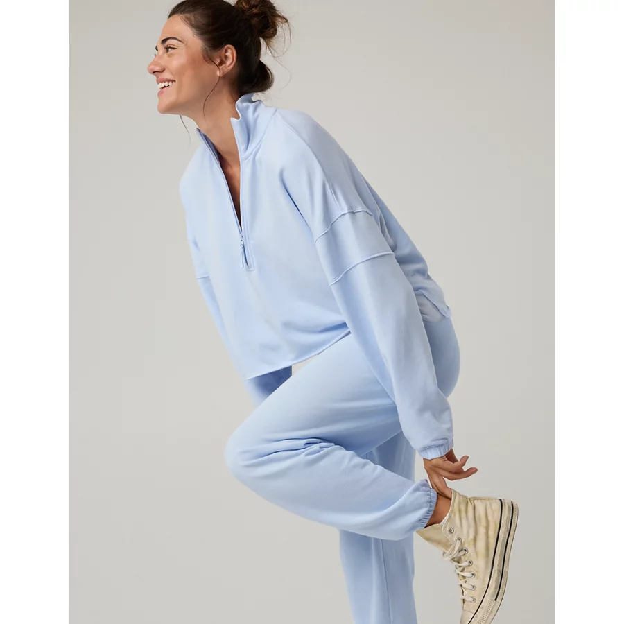 OFFLINE By Aerie OTT Seamed Quarter Zip Sweatshirt – Eyelet Blue